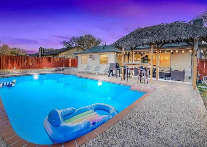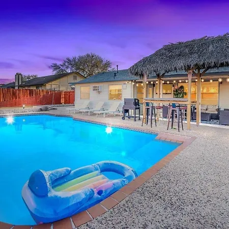 **Welcome to Aloha 4Br Private Pool Tiki Bar & Game Lounge! Villa**-a serene retreat located just 15 km from the vibrant San Antonio International Airport, making travels smooth and effortless for guests. Nestled in a quaint neighborhood, this charming villa combines modern comforts with tropical flair, providing the perfect setting for families and groups seeking both relaxation and fun.